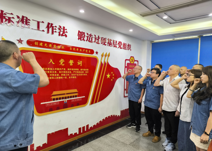 活動中,支部書記卿仕明帶領支部全體黨員高舉右拳,重溫入黨誓詞。“我志愿加入中國共產(chǎn)黨……”鏗鏘有力的誓言,激蕩著每一位黨員的赤誠之心。這既是對初心使命的深情回溯,更是對繼續(xù)奮斗的莊嚴承諾,激勵大家在水務崗位上勇?lián)厝危?/span>一方發(fā)展。