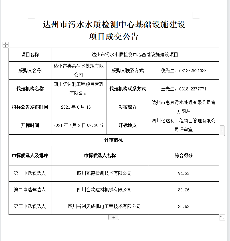 下一篇:達州市污水水質檢測中心基礎設施建設項目成交公告